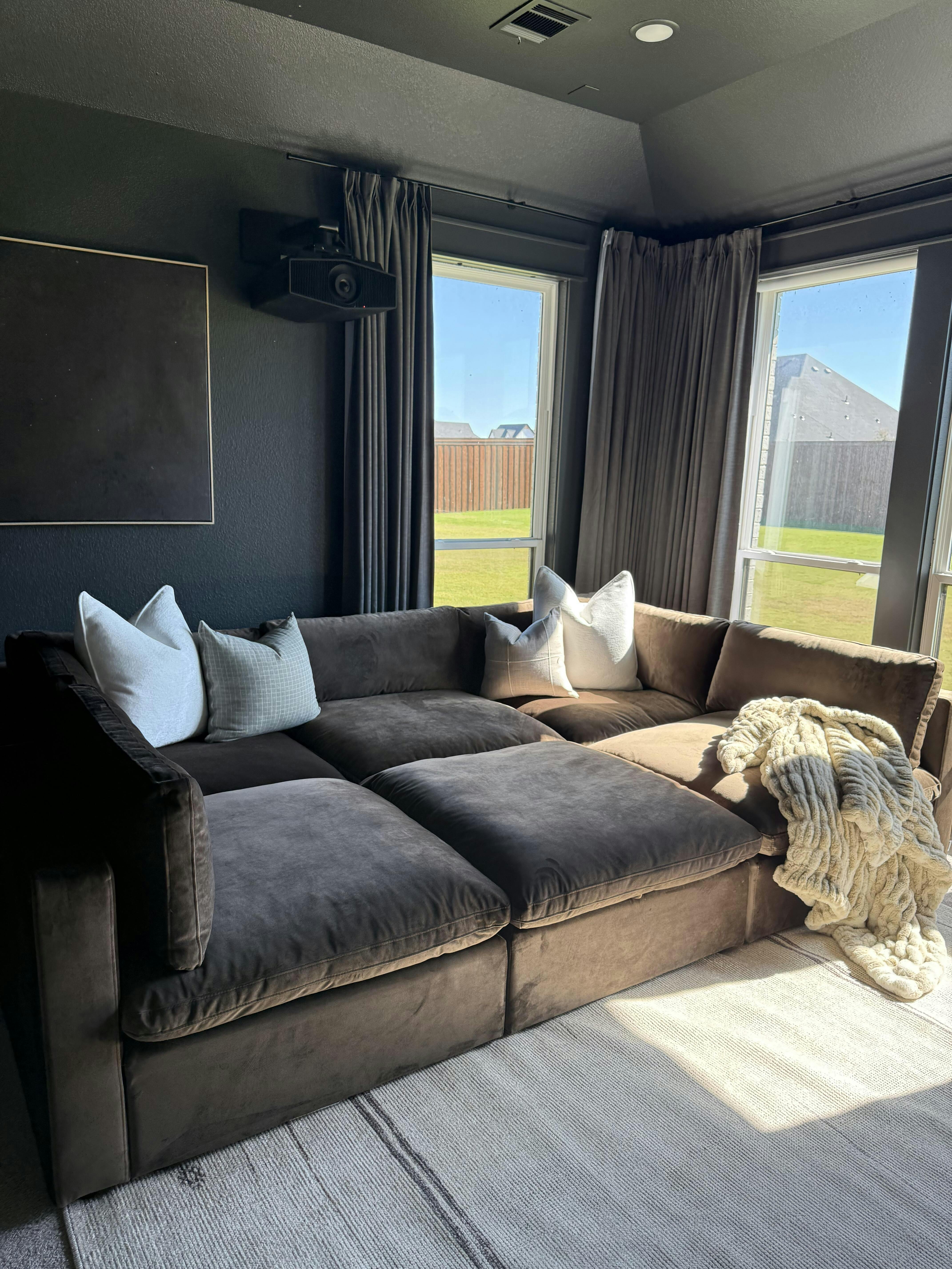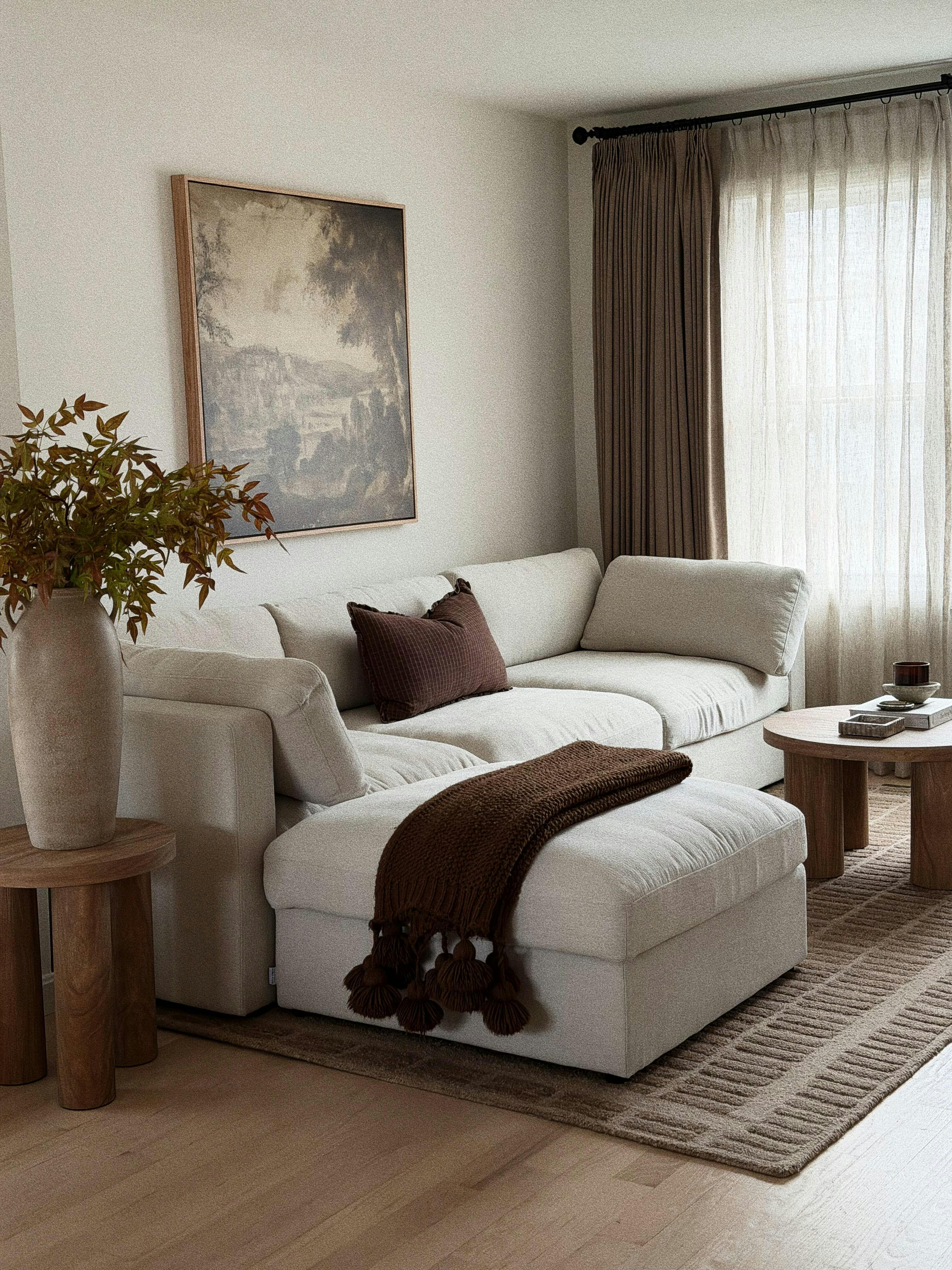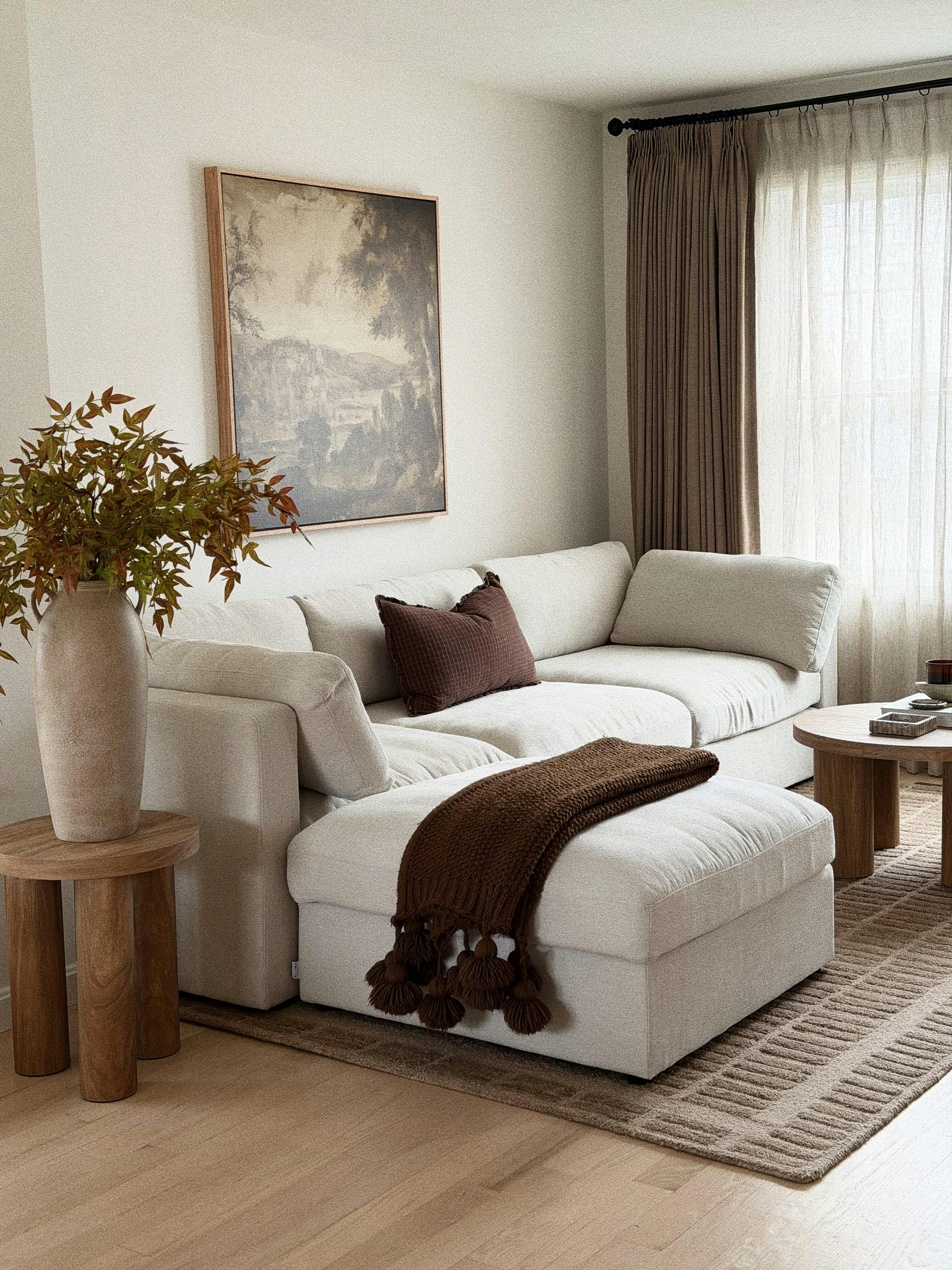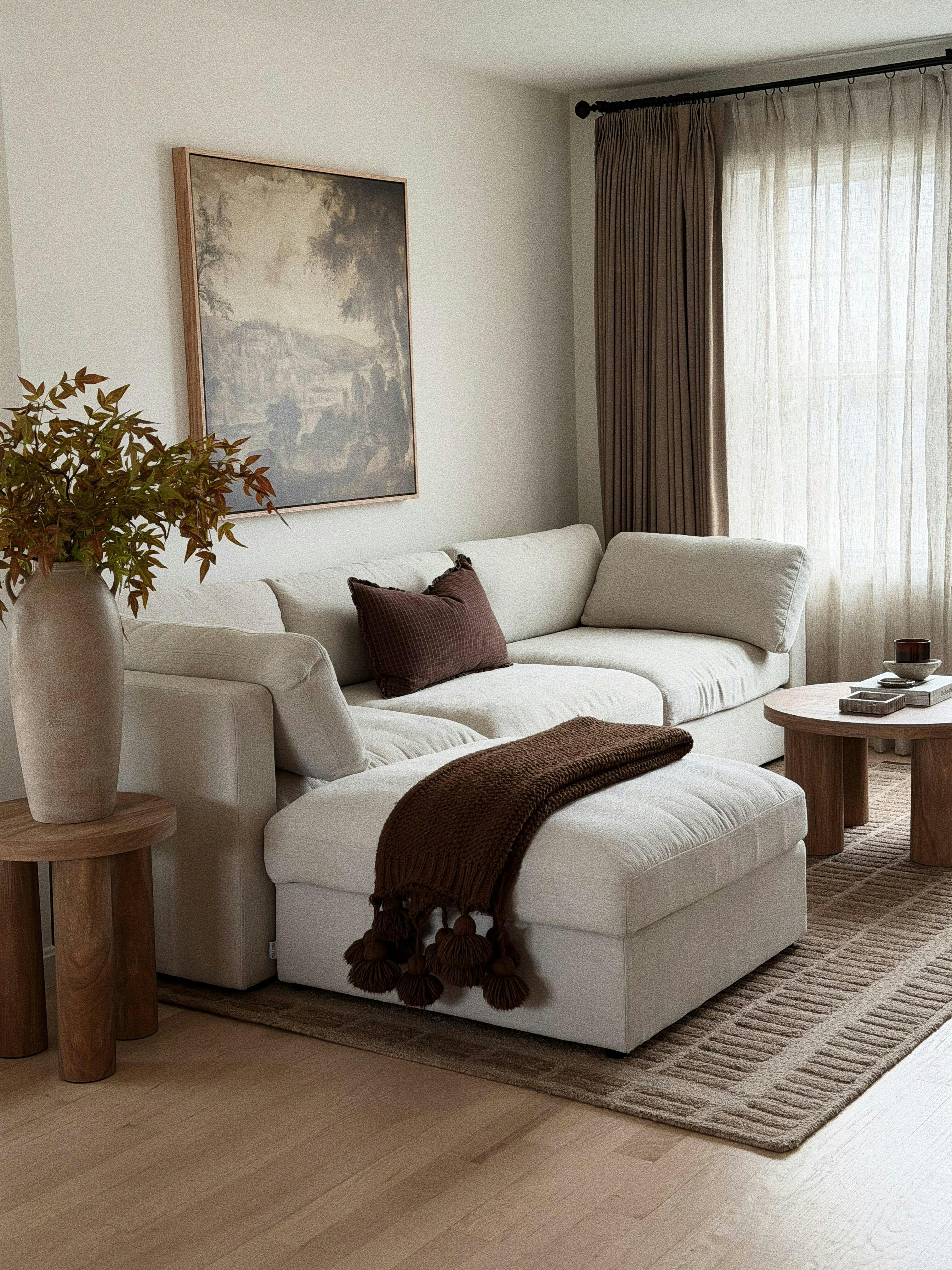 Neutral-toned fabric complements any décor while being soft, durable, and pet/kid friendly.