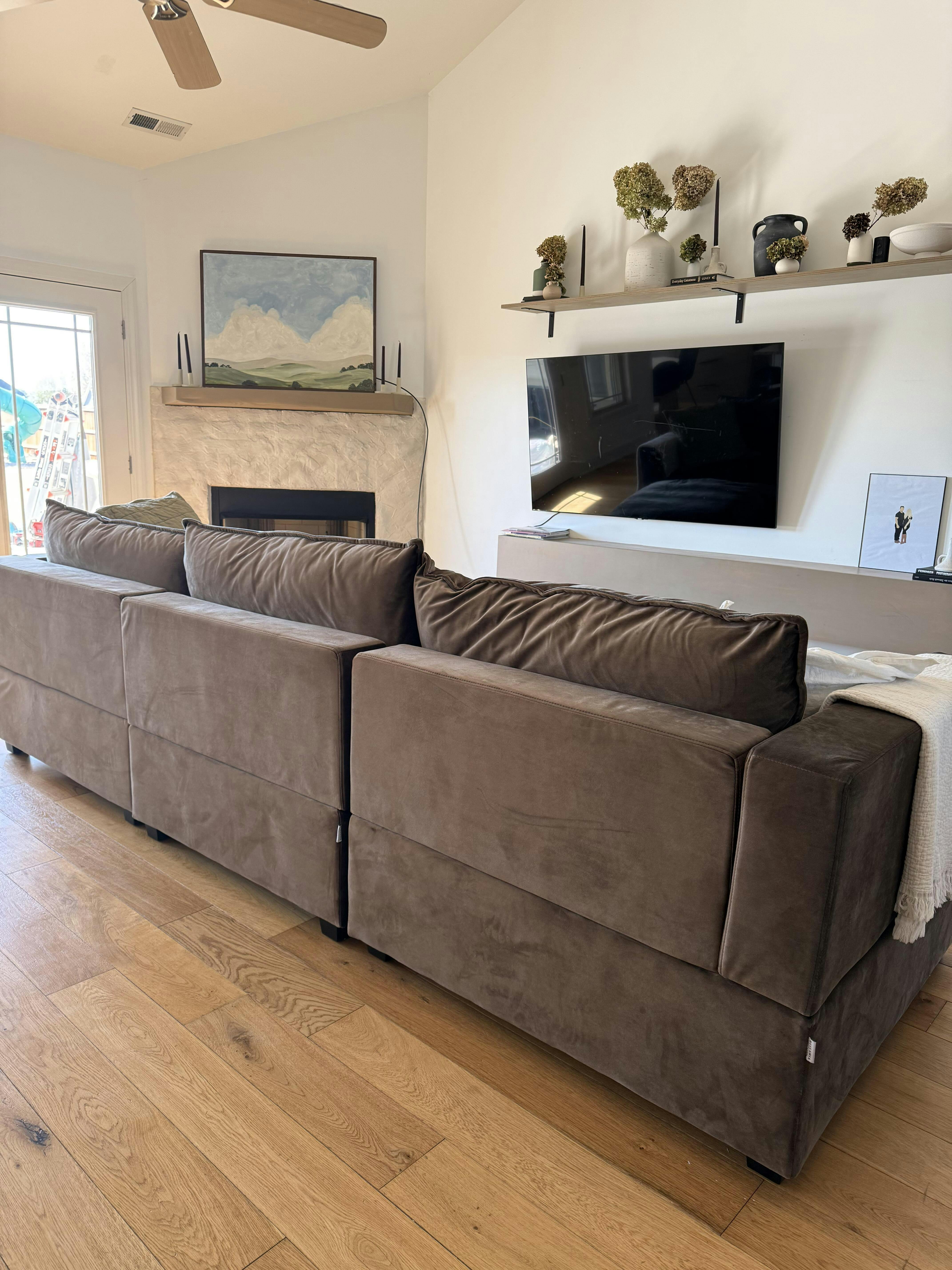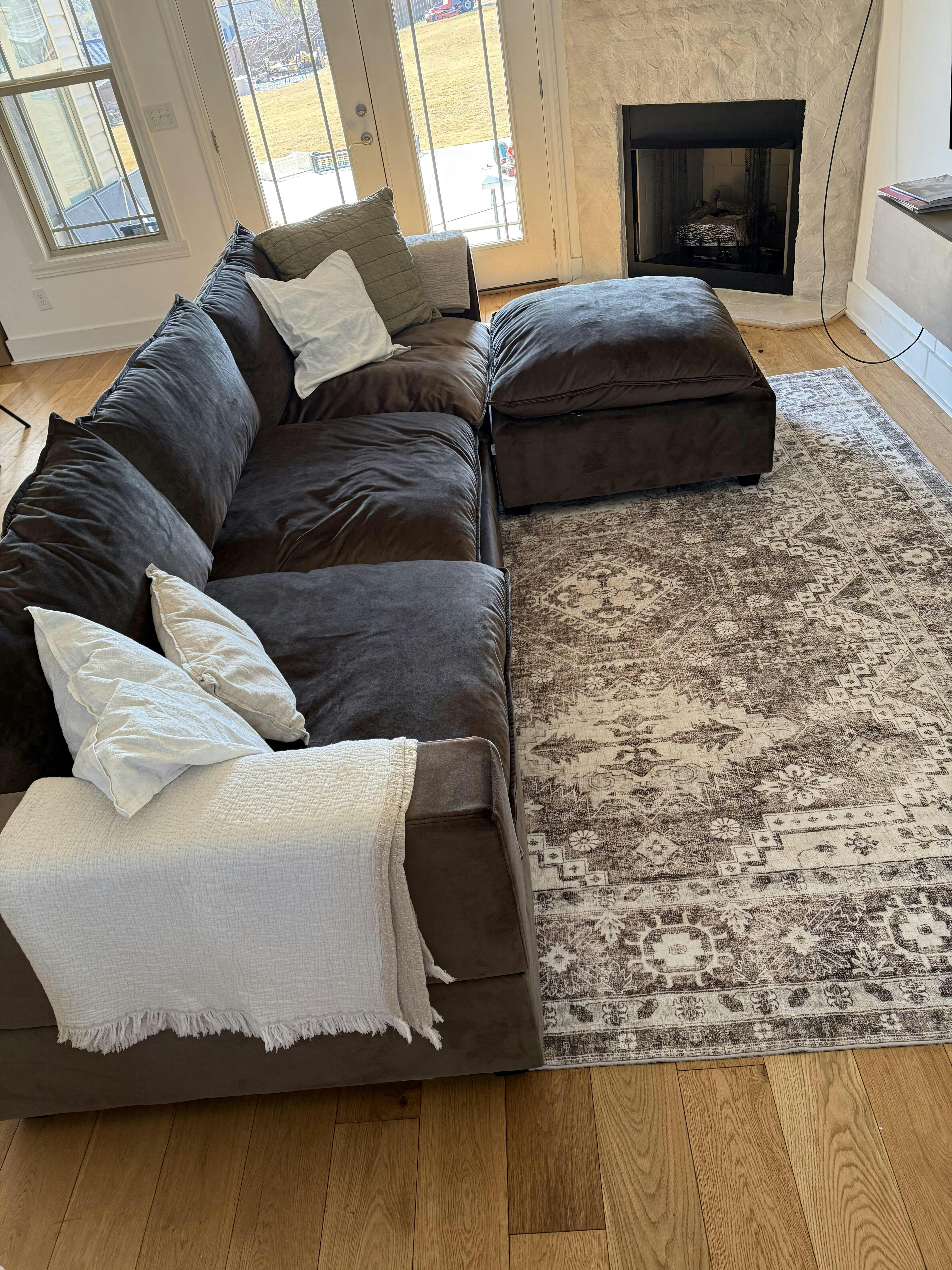 Neutral-toned fabric complements any décor while being soft, durable, and pet/kid friendly.